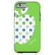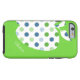 Het iPhone 6-hoesje van de stijlvolle leraar, gedaan in groen, met een grote witte appel aan de linkerkant, met groene en blauwe poka stippen. De witte tekst, op de bodem van het hoesje, is volledig klantgericht om te lezen wat u wilt. Een geweldige manier om je iPhone 6 te beschermen en een uitstekende gave voor je favoriete leraar.