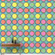 Dit behangontwerp heeft een leuk en retro stippenpatroon. Het ontwerp toont grote, kleurrijke cirkels in de tinten geel, sinaasappel, roze en groen tegen een levendige blauwe achtergrond. Elke cirkel is omlijnd in een contrasterende kleur, waardoor een gevoel van diepte en speelsheid aan het ontwerp wordt toegevoegd. Het herhalende patroon is gedurfd en opvallend, perfect voor het creëren van een levendige en vrolijke sfeer in elke kamer. Dit behang is ideaal voor badkamers, keukens, speelkamers, of om het even welke ruimte die een pop van kleur en een vleugje van grillen kon gebruiken.