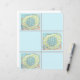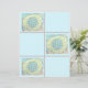 Een mooie polkadotbloem, gemaakt in gemengde media, wordt gepresenteerd in aqua- en limoengroen met kleine witte stippen in het midden, gemonteerd op een koele tint bleek blauw.