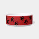 vettige rode achtergrond, grijze POPPING-pokadots en rijke zwarte poot drukt creëer af als een heel leuk en oogvangend huisdiertje. verander het woord MEOW met uw eigen huisdiernaam. de laag drukt aan linker en juiste zijn beweegbaar (of verwijderbaar) als u meer ruimte voor naam nodig hebt.