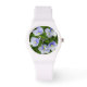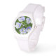 Polst kijkt naar kleine blauwe bloemen horloge