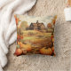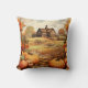Kussen met een rustiek afbeelding met mooie oranje pompoenen klaar om te worden geoogst. Een oude houten boerderij op de achtergrond.