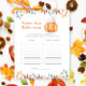 Een beetje pompoen is onderweg. Vier met deze baby cartoon pompoen thema voor baby shower feest! Waterverf schattige cartoon kawaii pompoen met herfstblad (pet) en herfstblad pet. Op de achterzijde van de kaart staan herfstbladeren.