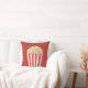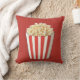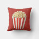 Popcorn in een klassiek rood-wit gestreept bad met een rode achtergrond. Ziet er lekker uit om als snack gegeten te worden als je een film kijkt. Het kan een goed ontwerp zijn om op je kussen te gebruiken, vooral als je ook van popcorn houdt!