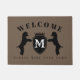 Kute deurmat met een afbeelding van het porseleinsilhouet (Duitse snede). achtergrondkleur en tekst. Ideaal geschenk voor het hondenliefhebber of de pooieeigenaar.
