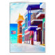 Peinture d'une rue à San Juan, Porto Rico avec le drapeau portoricain, les bâtiments colorés et les plantes.