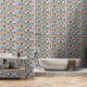 Papier peint décoratif coloré style art mural rétro carrelé. Parfait pour ajouter une touche audacieuse mais sophistiquée aux cuisines, salons, salles de bains ou murs avec accent.