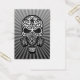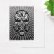 Ce crâne post apocalyptique est équipé d'un grand masque à gaz. Des lignes et des tourbillons complexes ornent le front et les joues dans le style du Jour des crânes de sucre morts. Les rayons de lumière brillent dans toutes les directions émanant de derrière le crâne. Ce motif symétrique est un graphisme élégant avec un thème post-apocalyptique.