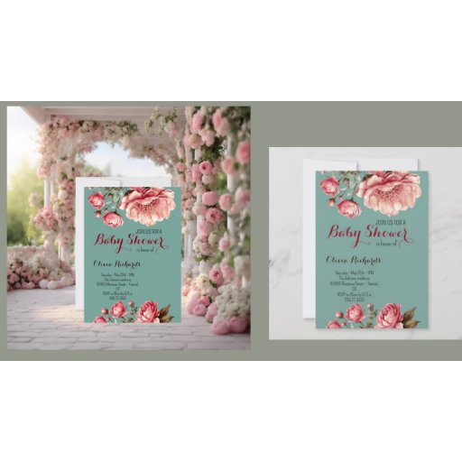 Poster Bébé en fleurs Rose rose Baby shower Faveurs