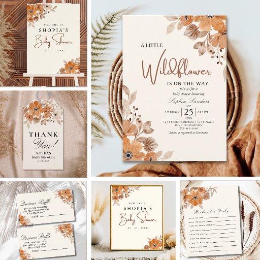 Poster Boho Brown Flowers Baby Shower