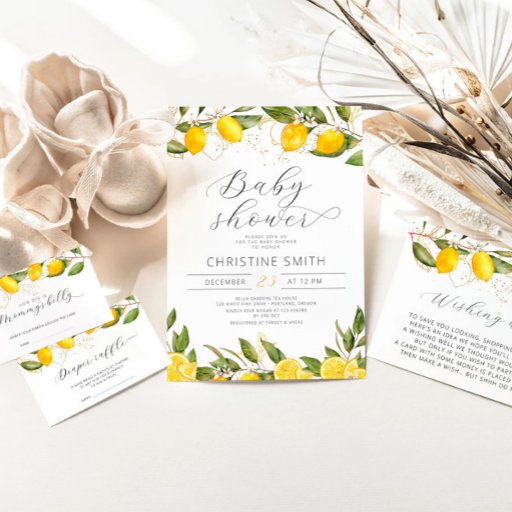 Les citrons sont un symbole de bonheur et de prospérité, ils font donc le thème parfait pour un baby shower. Avec des feuilles et des fleurs, des feuilles dorés et des éclaboussures, fêtez la nouvelle arrivée avec notre collection Lemon!