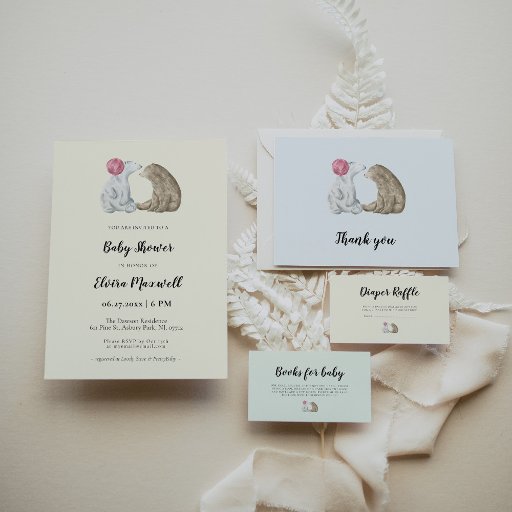 Chaque future maman mérite une célébration, alors assurez-vous de la douche avec tout votre amour, et quelques cadeaux amusants ! Organisez le baby shower parfait avec ces articles de papeterie et fournitures à thème animal, avec un mignon couple d'ours. Police et couleurs entièrement personnalisables, arrière - plan pois amovible.