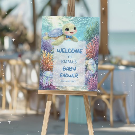 Poster Cute Sea Turtle Boy Baby Shower Welcome