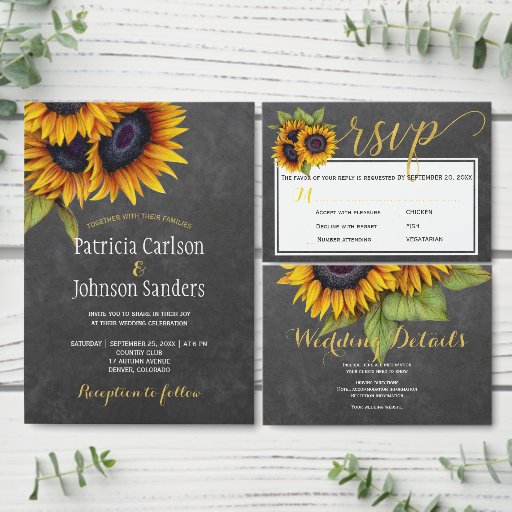 Rustic sunflower wedding grey chalkboard suiteConçu par Anka Designs