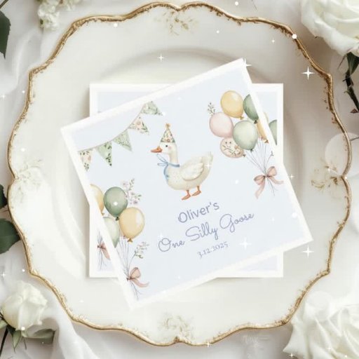 Favors Blue One Silly goose Birthday party Poster Les articles correspondants sont disponibles.