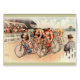 Fietscène. Een peloton van zes fietsers kruist de finish voor een drukke opstand, waargenomen door een scheidsrechter. 1895.