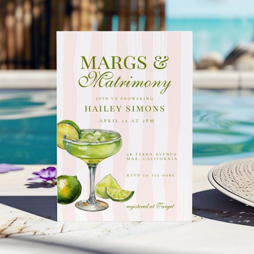 Invite guests to sip and celebrate with this Margs & Matrimony Margarita Bar – Help Yourself Sign, the perfect addition to a fun bridal shower or bachelorette fiesta. Featuring light pink stripes and a watercolor margarita with fresh lime slices, this cheerful design adds a festive touch to any margarita station or drink table. Available as an instant download PDF for easy printing or professionally printed and shipped by Zazzle for a polished party display.