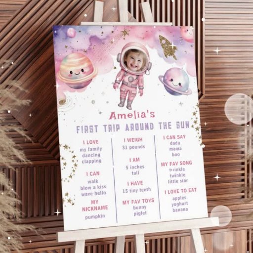 Premier voyage autour du soleil Anniversaire Photo étape Poster Objets correspondants disponibles.