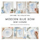 Printable Blue Bow Welcome To baby shower. Available digitally and printed. Modern and minimalist, the words are overlaid onto the Watercolor soft blue bow.