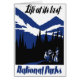 Affiche entièrement reconstituée et numériquement augmentée de voyage montrant un terrain montagneux rocailleux avec trois hommes dans le premier plan. Couleurs corrigées. Imperfections enlevées.