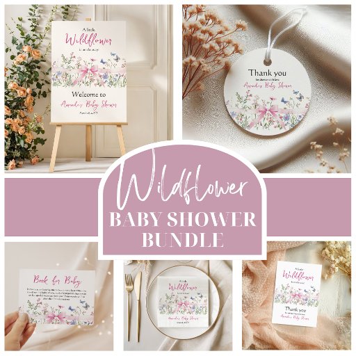 Poster Wildflower Floral Bow Baby Shower Pacifier Hunt