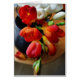 freesias rouges et blanches dans un pot d'argile avec effet pastel