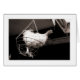 Un poulet farci est assis dans un panier suspendu. Prise à l'ancien marché de l'Emporium / Flea de Robert qui était dans Salisbury Road, Cardiff. (maintenant à l'étage dans Cardiff Antique Centre). La photo est en noir et blanc réchauffé.
