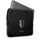 L'élégante pochette noire pour ordinateur portable dispose d'un monogramme botanique en or au centre.