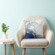 Dit kussen is mooi met blauw en goud patroon op een witte achtergrond,