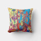 Mooie originele mixed-media schildering op een mollig, kussen voor uw huis of patio. Zonnig, in warme tinten geel, sinaasappel en licht blauwgroen. Een heerlijke, one-of-a-kind pop van kleur voor uw kenmerkende interieur.