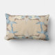 Een mooi aangepast kussens met een exotisch strandthema. Een patroon van de zandtextuur in neutrale roomtinten en tinten van oceaanblauw. Bovenaan zie je een verscheidenheid aan kieuwen, schelpen, zee-urchinen, zeesterren en parels.