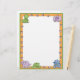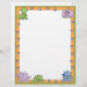 Deze schattige cartoon briefhoofd kenmerkt de dinosaurusvoet prints op een oranje grens en baby dinosaurussen in de bovenste hoeken en langs de onderste grens.