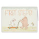 Un bébé qui fait ses premiers pas est une étape spéciale à célébrer! Un ours mignon pousse un lapin à cheval sur un wagon. Carte parfaite pour un petit garçon ou une petite fille !