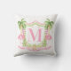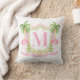 This Christmas pillow has a preppy design featuring a Christmas crest with palm trees and flamingos wearing Santa hats. You can personalize with your name.