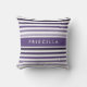 Preppy Large Striped Pattern met naam in Paars Kussen