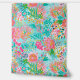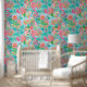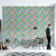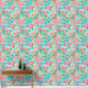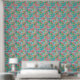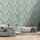 Een naadloos preppy patroon met botanische elementen, waaronder bloemen, bladeren en gras, in baby roze, koraal, donkerroze en groen op een mintgroene achtergrond. Het ontwerp heeft een handgeschilderde uitstraling, het mengen van zachte en levendige tinten tot creëer en een fris en stijlvol effect.