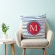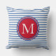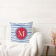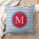 Dit zeer preppy kussen beschikt over klassieke nautische blauw-witte strepen met een schattig rood, wit en blauw monogram dat u kunt personaliseren met uw keuze van initiaal.