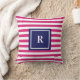 Rendy patroonkussen met ophef roze en witte horizontale strepen en een tijdelijke aanduiding voor uw monogram op een blauw vierkant lijst met een witte verschuivingsrand. Verander eenvoudig de kleuren of lettertypestijl om de stijl aan te passen door op Aanpassen te klikken om naar het ontwerpgereedschap te gaan en uw eigen details toe te voegen.