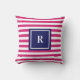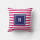 Preppy Navy Blue en Hot Pink Monogram Kussen