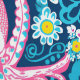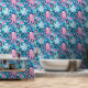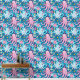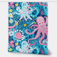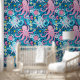 Een naadloos, met de hand getekend patroon met roze en witte octopussen, omringd door witte, blauwe en gele bloemen, geplaatst tegen de diepblauwe oceaanbodem. Het ontwerp combineert grillige zeeen wezens met levendige bloemenelementen, waardoor een charmante en levendige onderwaterscène ontstaat.