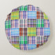 Preppy Patchwork Madras Navy Quatrefoil Monogram Rond Kussen