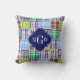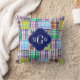 Preppy Patchwork Madras Navy Vierbladig Monogram Kussen
