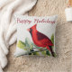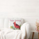 Prettige feestdagen Dit grote winterkussen heeft een gedurfde rode mannelijke kardinaal op een bladerboomtak en de zin "A" op de voorkant. De achterkant is voorzien van uw gepersonaliseerde monogram tekst en volledige naam in script op een cranberry rode cirkel badge.