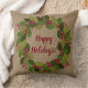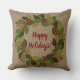 prettige feestdagen! | Groene en Rode Wreath Holiday kussen die u gemakkelijk kunt wijzigen of verwijderen.