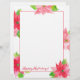 Een fel en briefhoofd voor kerstbrieven met roze en fuchsia poinsettia-bloemen geschilderd met waterverf. In de taal van bloemen symboliseren poinsettia’s waardering en "wees van goede moed." U kunt de tekst aanpassen aan uw behoeften.
