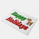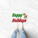 Doormat met prettige feestdagen in 3D groene en rode tekst en een rendier. Verkrijgbaar in verschillende grootten.