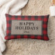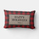 Creëer uw eigen roodrode en zwarte geblazen gebuffellade en bruine landstijl burlap Prettige feestdagen decorator lumbar kussen. Uw kussen wordt gepersonaliseerd met het jaar in zwarte teksten of om het even welke tekst u kiest.