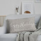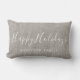 Op maat ontworpen decoratief lumbaal kussen met "HappyHolidays" of uw keuze van tekst in moderne borstelscript / handkalligrafie met gepersonaliseerde familienaam op een rustieke jute achtergrond. Vakantie/Kerstmis gepersonaliseerde home decor. Landhuis boerderij home decor ideeën.
