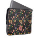 Pretty Modern Dark Floral Pattern Monogram Laptop Sleeve
