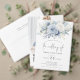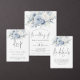 Printable Dusty Blue Florals Wedding Menu. Digitaal verkrijgbaar en gedrukt. Een informele set typografie in het zwart voor de hoofding Menu als aanvulling op de rest van de tekst die u gemakkelijk kunt personaliseren, met prachtige herfstkleurige bloemen en grassen aan de bovenkant.